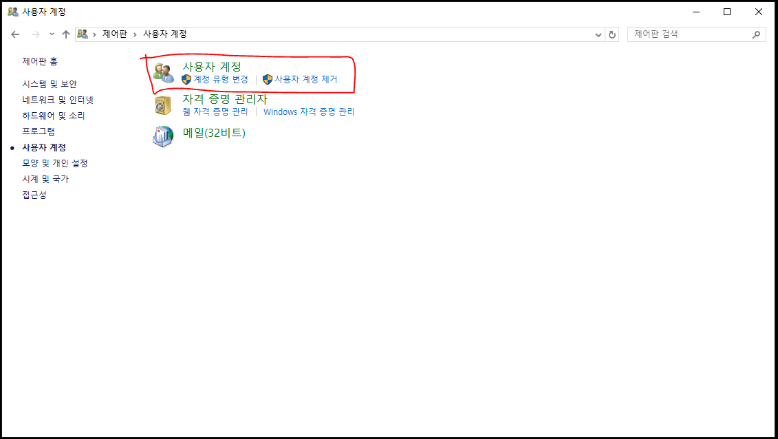 - **[사용자 계정]**을 찾아서 클릭합니다.