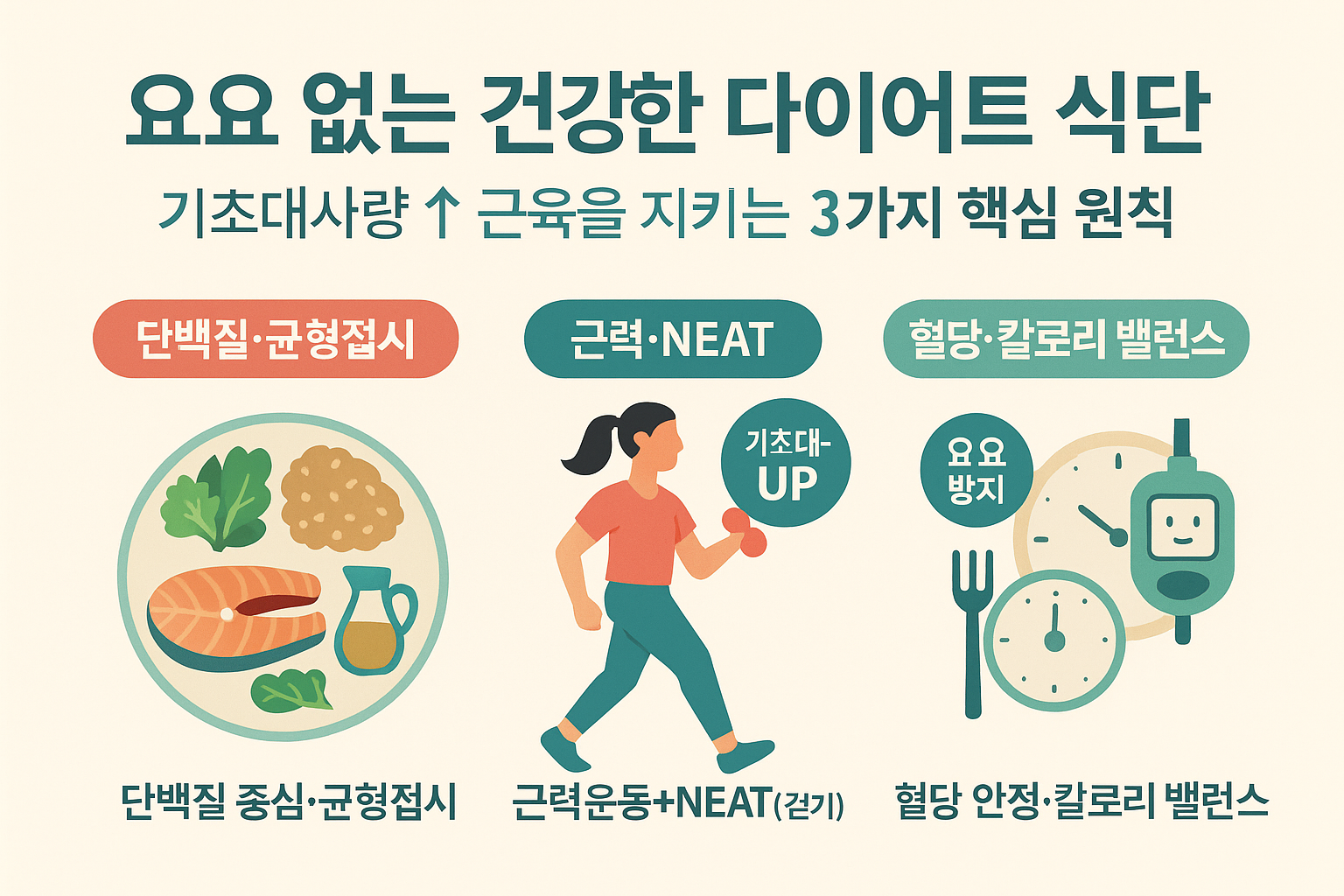 요요 없는 건강한 다이어트 식단: 기초대사량을 높이고 근육을 지키는 3가지 핵심 원칙